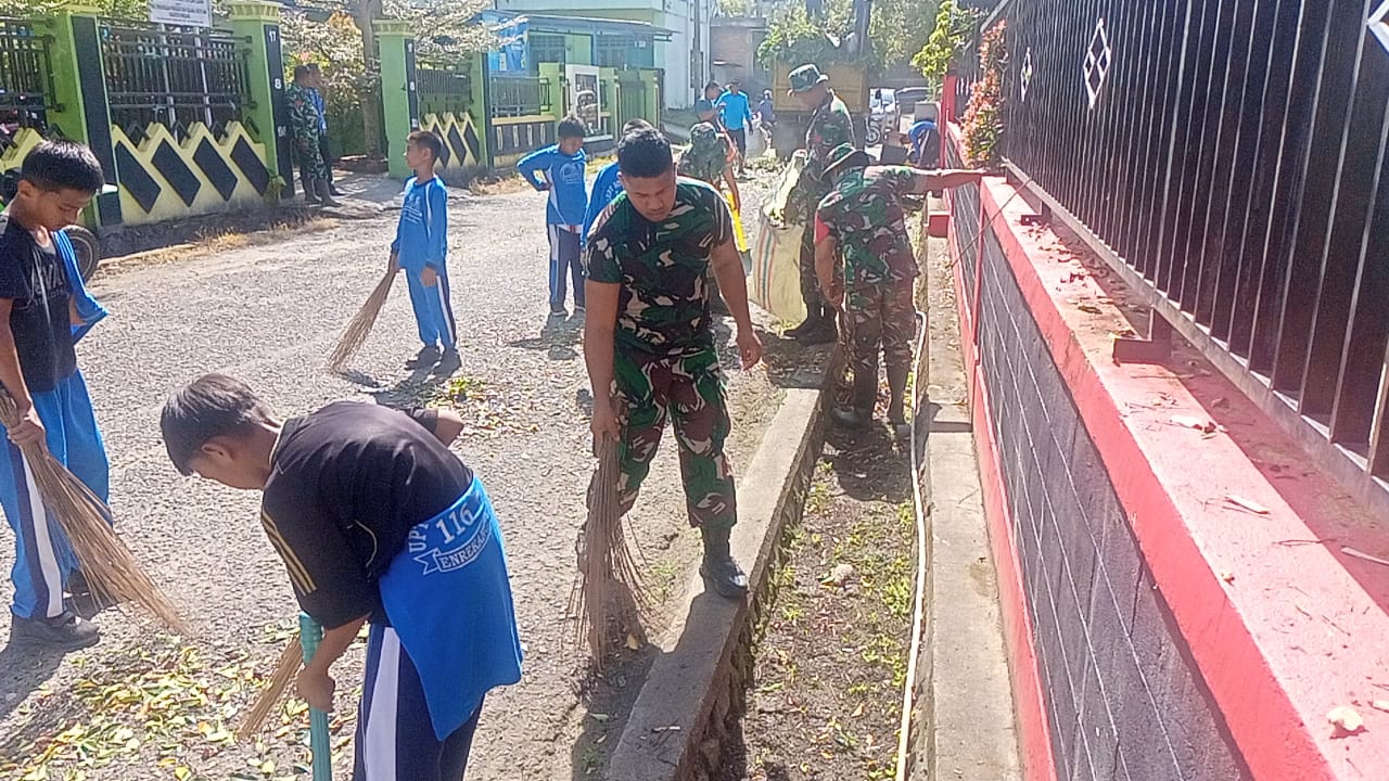 Dalam mendukung pelaksanaan karya bakti tersebut, upaya pembersihan Lingkungan Sekolah sangat dibutuhkan sehingga Lingkungan Sekolah tidak terlihat kumuh dan kotor.Pada kesempatan tersebut, Babinsa juga menyampaikan kepada Kepala sekolah dan para guru, agar selalu peduli dengan kebersihan dan keamanan lingkungan. Sehingga tercipta keadaan dan situasi di lingkungan sekolah menjadi bersih, nyaman dan aman,dengan demikian, seluruh guru dapat bekerja dengan rasa tenang, aman dan nyaman,