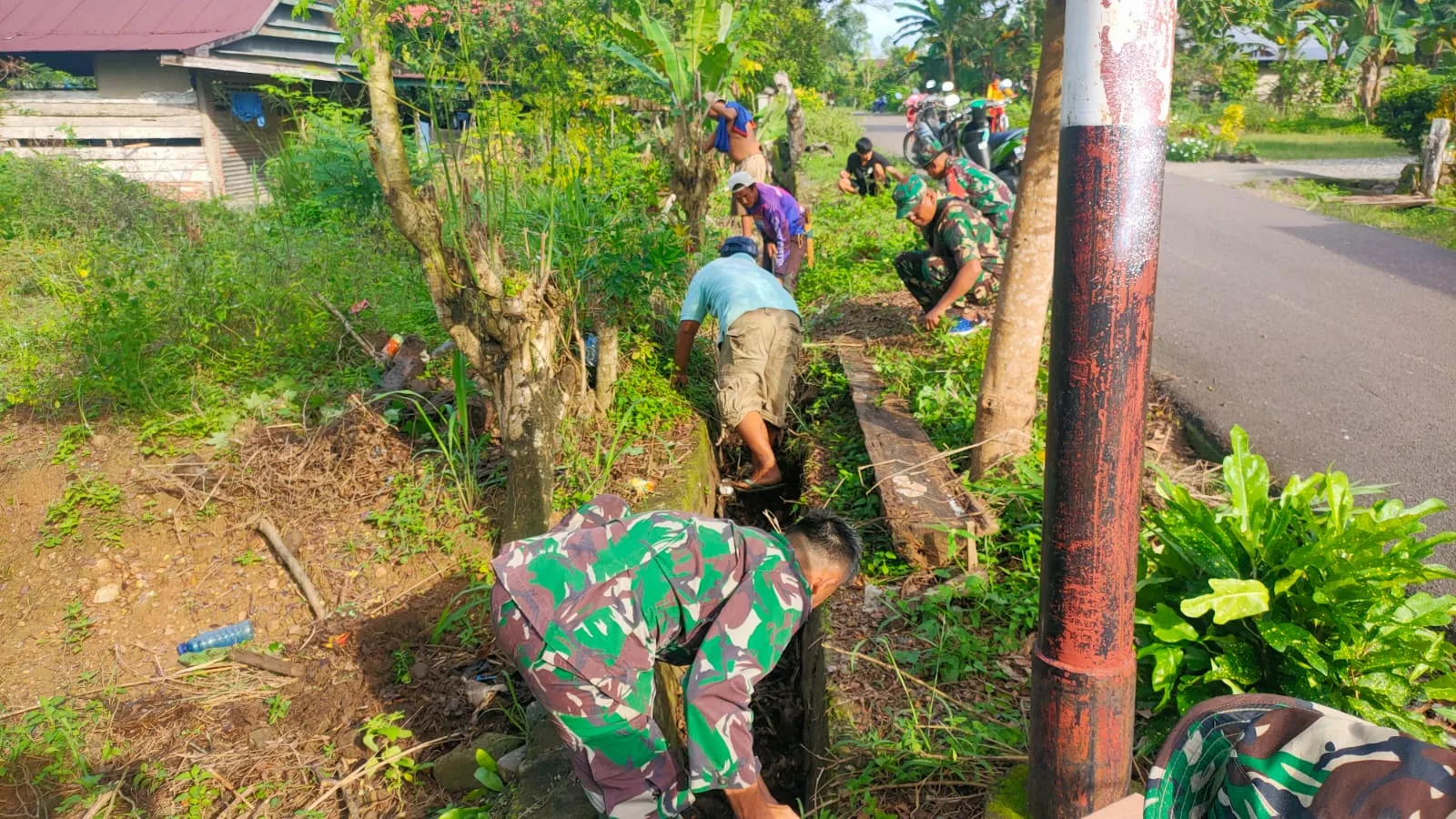 Kegiatan tersebut melibatkan personel Koramil bersama masyarakat setempat yang turut berpartisipasi secara gotong royong. Selain membersihkan lingkungan, Babinsa juga memberikan imbauan kepada warga agar selalu menjaga kebersihan dan tidak membuang sampah sembarangan.