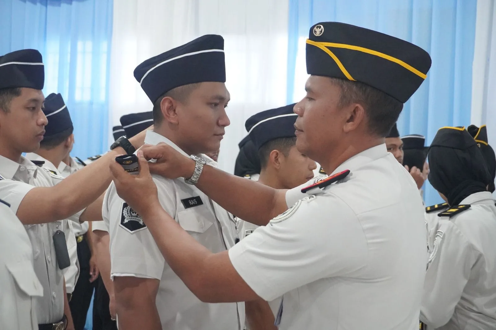Kegiatan dilanjutkan dengan prosesi penyematan tanda pangkat oleh Kepala Lapas kepada perwakilan pegawai. Penyematan tersebut menjadi simbol bertambahnya tanggung jawab dalam meningkatkan kualitas kinerja.