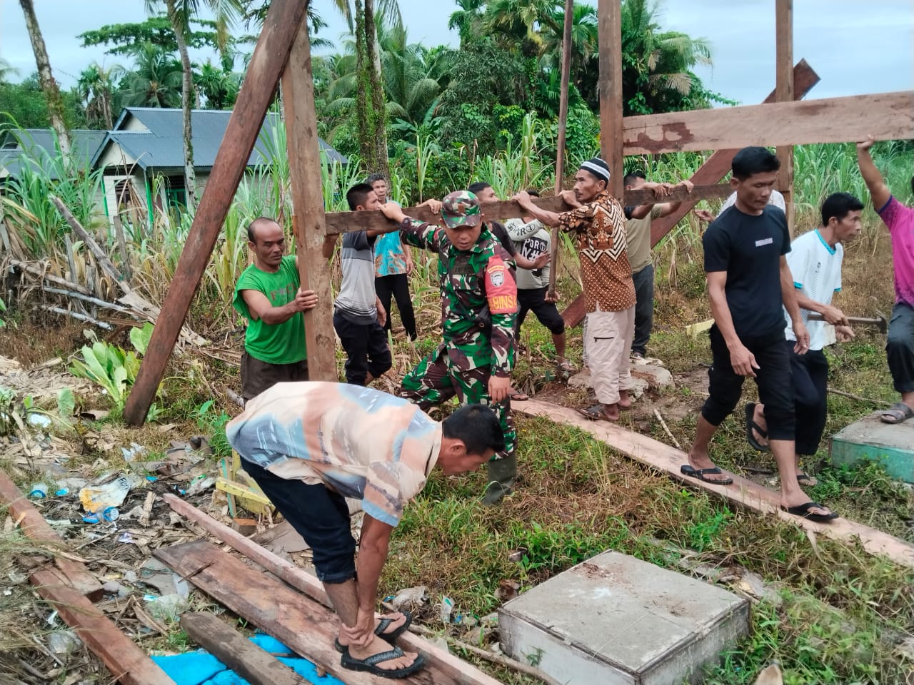 Simeulue – Babinsa Koramil 06/Teluk Dalam Koptu Apriandi melaksanakan kegiatan gotong royong bersama masyarakat mendirikan rumah warga sebagai wujud kepedulian dan kerja sama TNI dengan rakyat, bertempat di Desa Bulu Hadik Kec. Teluk Dalam. Rabu (09/04/2025).