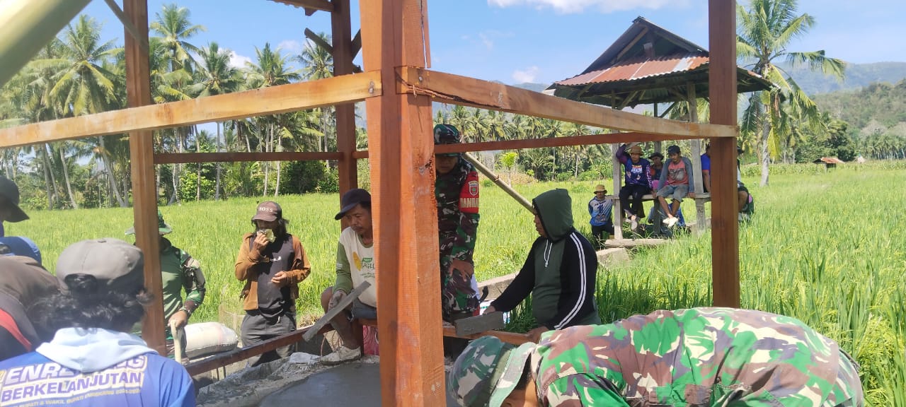 Enrekang,– Babinsa Koramil 1419-02/Enrekang Serma Bakri Melaksanakan pengecoran lantai dan dudukan mesin pompa dalam rangka optimasi lahan (Oplah) di Desa Buntu Batu Kec. Enrekang Kab. Enrekang. Selasa (02/09/2025)