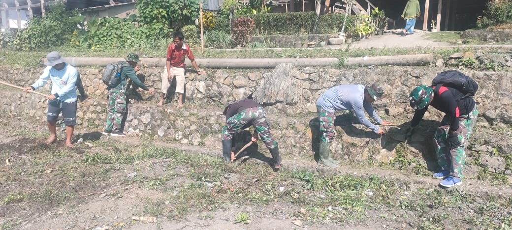 Babinsa 04/Alla Bersama Warga Bersihkan Drainase di Desa Curio