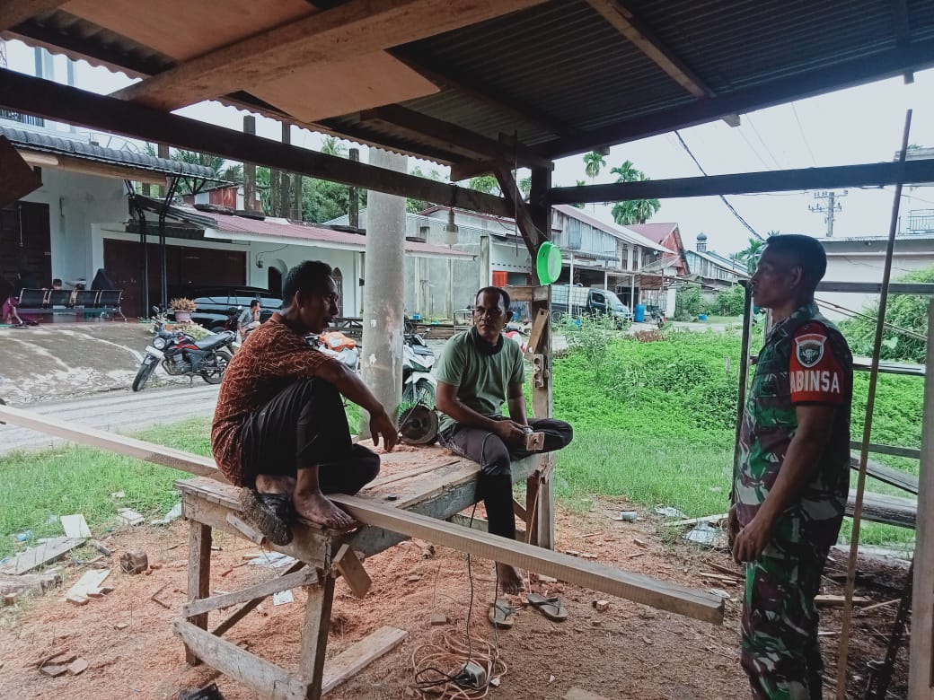 ACEH SELATAN – Babinsa Koramil 08/Bakongan Kodim 0107/Aceh Selatan Kopda Chairuman melaksanakan kegiatan Komunikasi Sosial (Komsos) bersama para perajin kayu di Desa Keude Bakongan Kecamatan Bakongan, Aceh Selatan, Minggu (14/9/2025).