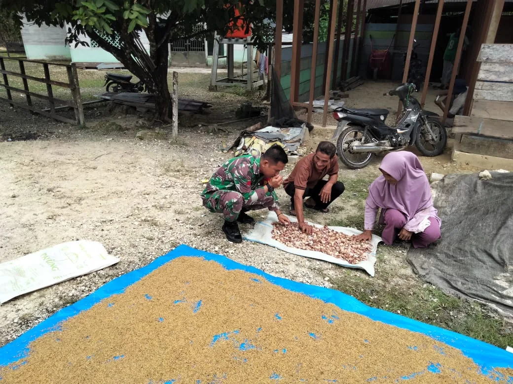Praka Mitra Gunawan Babinsa Koramil 05/Simeulue Barat, Kodim 0115/Simeulue, Korem 012/Teuku Umar. Melaksanakan komsos membantu warga menjemur padi hasil panen dari sawah mereka sendiri, Kegiatan ini biasanya dilakukan sebelum di bawa ke tempat penggilingan untuk di jadikan beras di Desa Layabaung, Kecamatan Simeulue Barat, Kabupaten Simeulue. Kamis (29/01/2025).