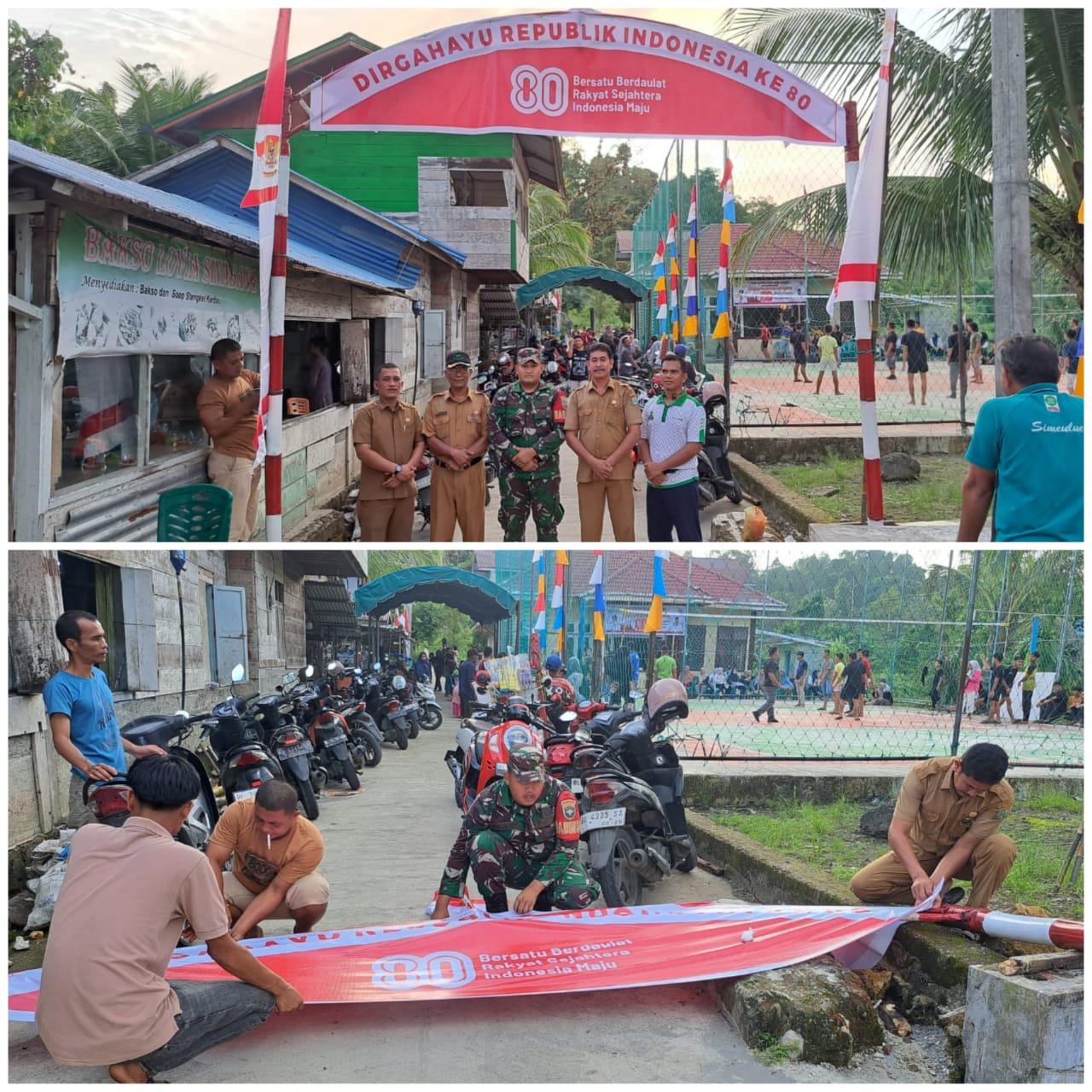 “Sehingga Babinsa harus mempunyai wawasan yang luas demi kebaikan dan kemajuan wilayah binaan. Waktu dekat kita bangsa Indonesia akan bersama sama untuk merayakan HUT RI ke – 80 Kemerdekaan Republik Indonesia. Saran kami selaku Babinsa untuk pembuatan Gapura di kampung ini. Dan saran itu langsung disepakati warga masyarakat binaan,”Ungkap Sertu Akmalul.