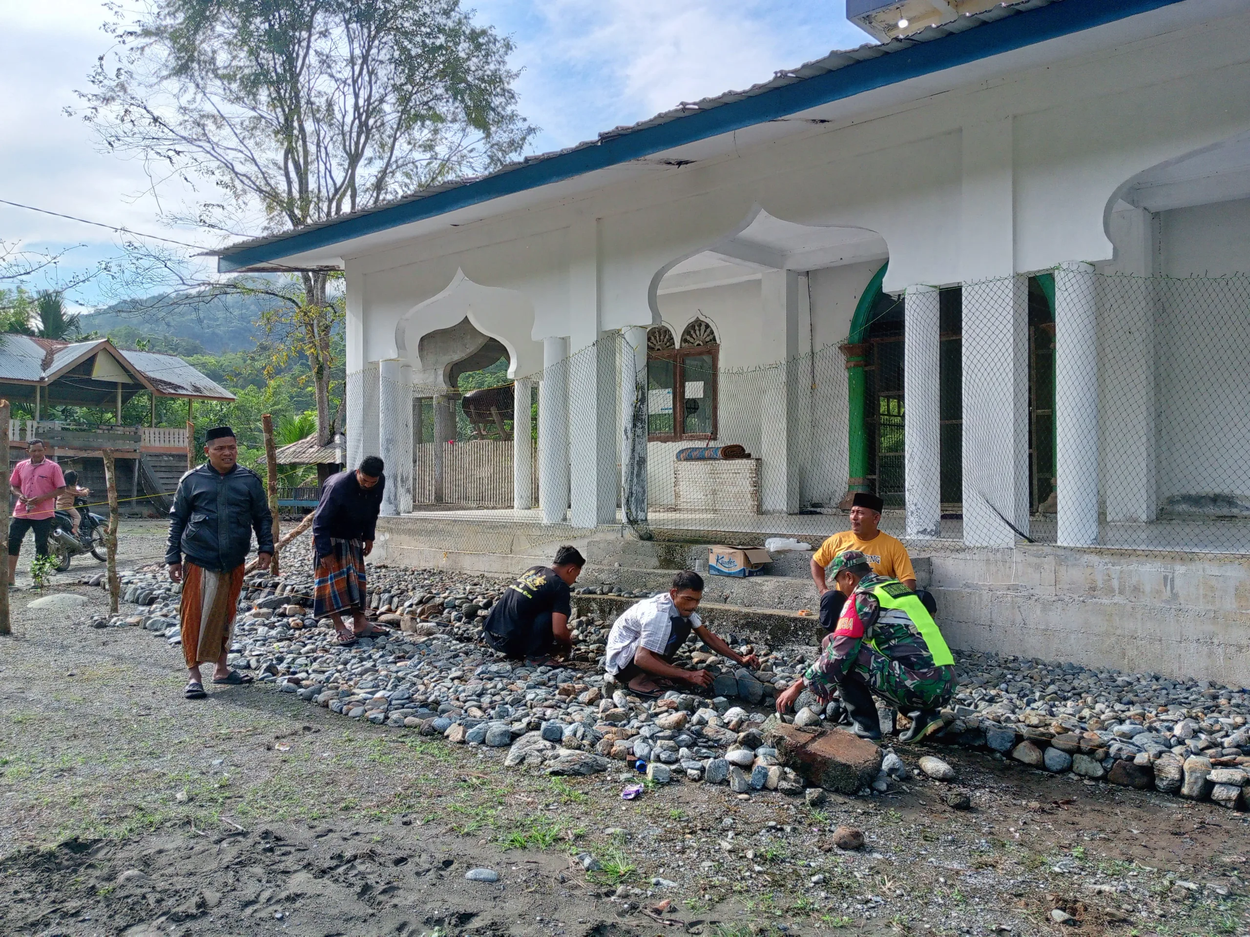 Babinsa Posramil Beutong Ateuh Banggalang Kodim 0116/Nagan Raya Serda Zulfadli dan masyarakat sekitar terlihat bersama -sama membersihkan masjid, membersihkan sampah diparit, membersihkan kaca dan membersihkan rumput yg tumbuh dihalaman masjid di Desa Blang Puuk Kecamatan Beutong Ateuh Banggalang Kabupaten Nagan Raya, Jum’at (09/01/2026).