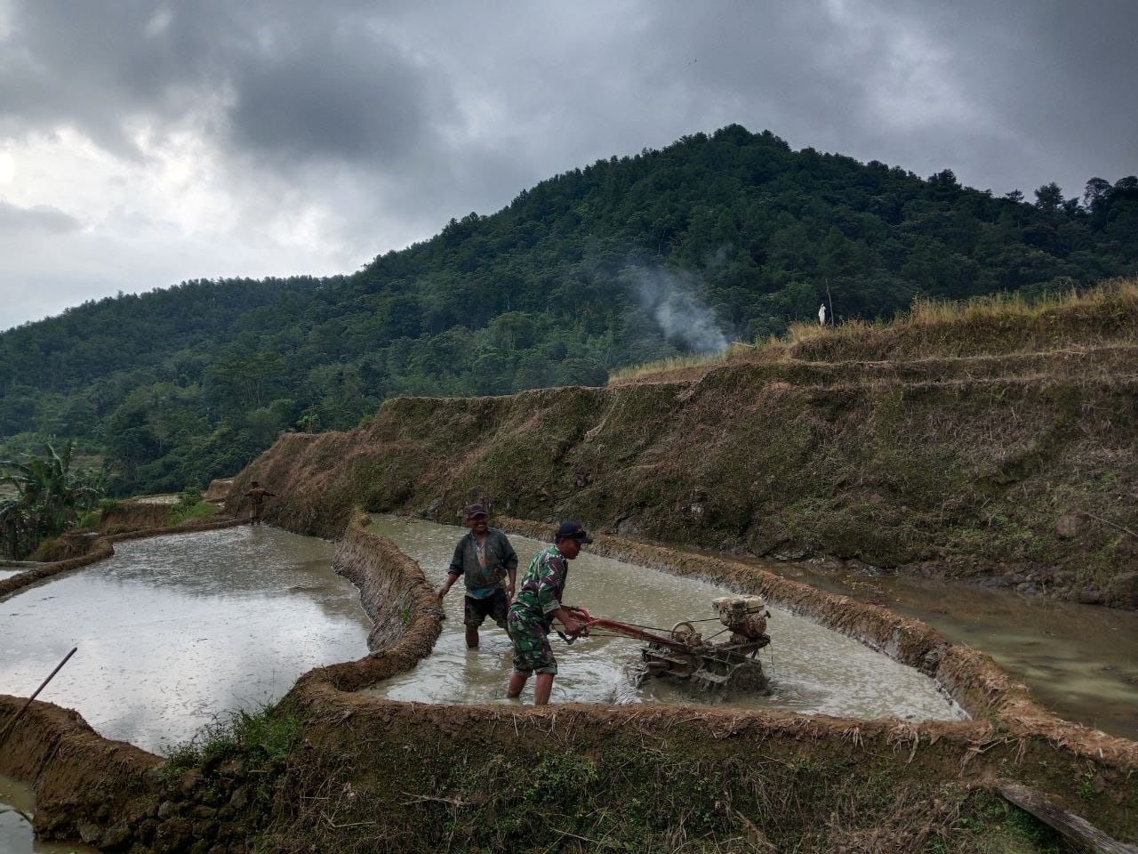 Dalam kegiatan tersebut, Serda Muhammad Iqbal turut serta membantu proses pengolahan tanah dengan memanfaatkan sistem irigasi yang tersedia secara optimal di musim hujan. Kehadiran Babinsa ini merupakan bentuk nyata keterlibatan TNI AD dalam mendukung petani guna mempercepat proses tanam padi di musim tanam yang sedang berlangsung.