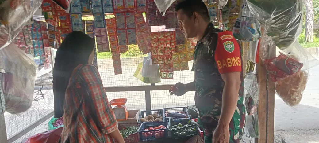 Babinsa Cek Harga Kebutuhan Pokok Didesa Binaan