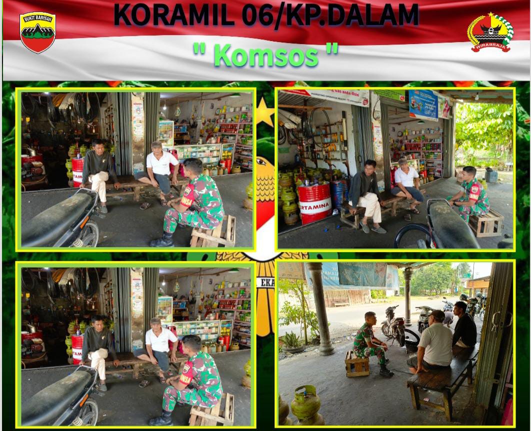 KAMPUNG DALAM, – Demi menjalin keakraban dengan warga binaan yang merupakan tugas pokok Babinsa. Salah satunya dengan melakukan Komunikasi Sosial (Komsos) guna menciptakan interaksi serta kekompakan antara Babinsa dan warga binaan.