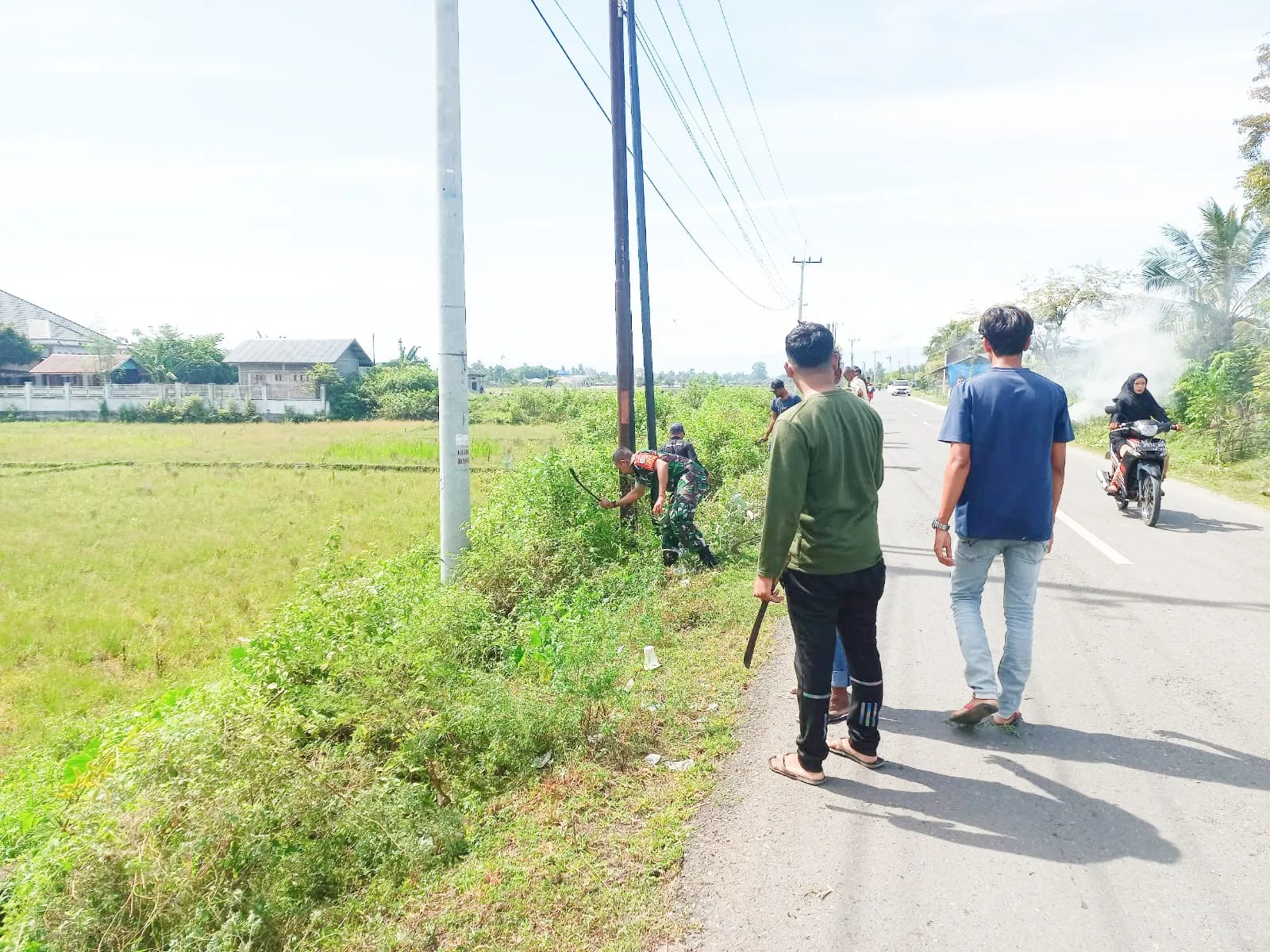 Kegiatan ini melibatkan warga setempat yang dengan penuh semangat dan antusias bekerja bersama membersihkan rumput liar yang tumbuh di sepanjang bahu jalan serta mengangkat endapan tanah dan sampah dari parit.