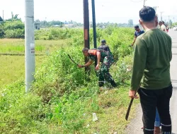 Pidie – Kepedulian terhadap kebersihan dan kelestarian lingkungan kembali ditunjukkan oleh aparat teritorial bersama masyarakat. Babinsa Koramil 26/Grong-Grong Kodim 0102/Pidie, Serda Efendi, turut ambil bagian dalam kegiatan gotong royong pembersihan rumput liar dan parit di bahu jalan Desa Sentosa, Kecamatan Grong-Grong, Kabupaten Pidie, Sabtu (18/04/2026).