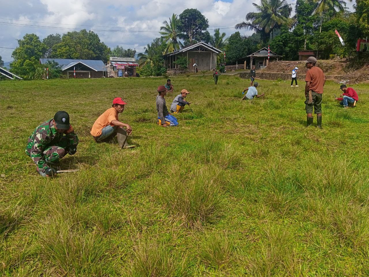 > “Lapangan ini tidak hanya sebagai tempat olahraga, tetapi juga sebagai sarana interaksi sosial warga. Dengan kerja bakti bersama, kita harap masyarakat semakin peduli dan merasa memiliki terhadap fasilitas yang ada di desanya,” ujar Serda Nur Syamsu.