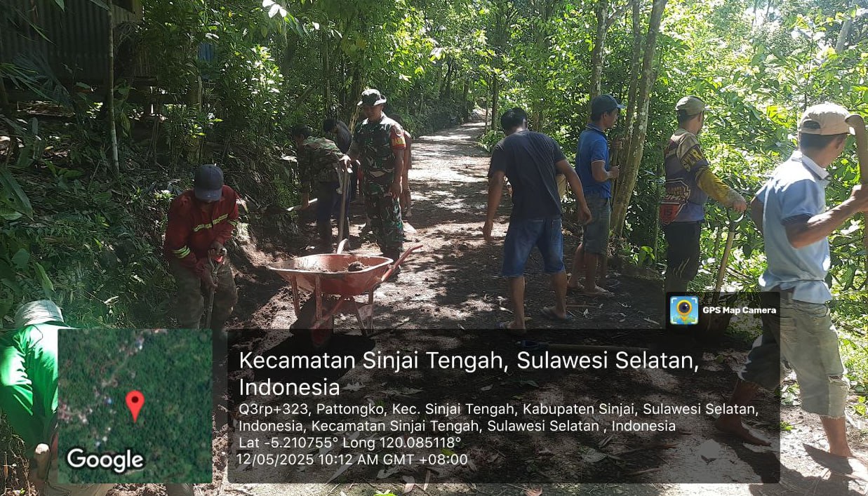 Sinjai – Babinsa Desa Pattongko Koramil 1424-03/Sinjai Tengah, Serda Asri Bahe, bersama Kepala Dusun dan masyarakat Dusun Karoppa, Desa Pattongko, melaksanakan kegiatan kerja bakti membersihkan dan memperbaiki parit di sepanjang jalan tani, Kegiatan ini dilakukan sepanjang 150 meter sebagai bagian dari upaya bersama membangun infrastruktur pedesaan, Senin (12/05/2025).