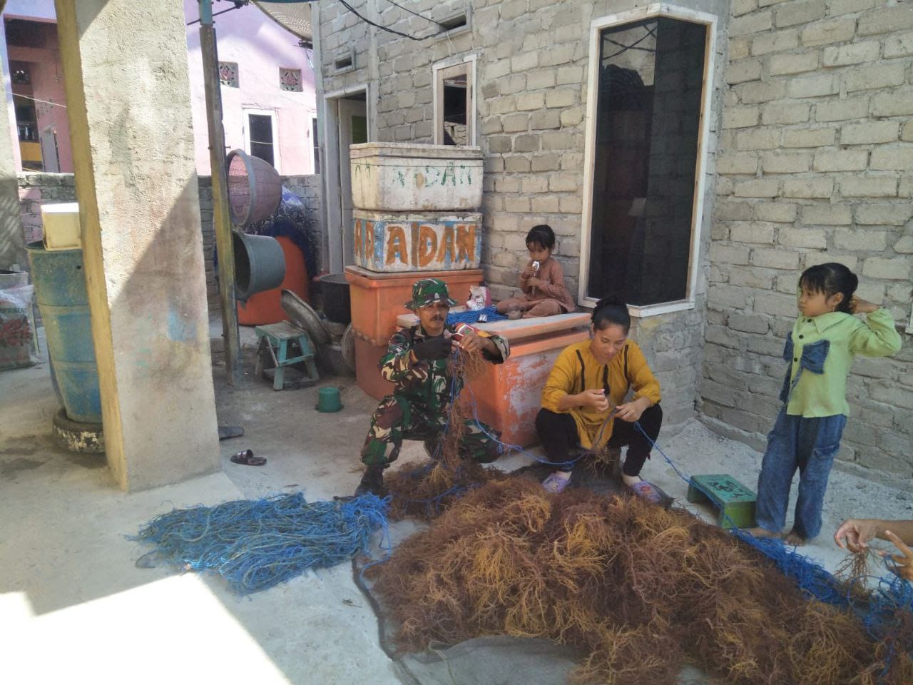 Dalam kesempatan tersebut, Serda Husain juga memberikan motivasi dan dorongan moral kepada masyarakat untuk terus mengembangkan potensi daerah, khususnya dalam sektor budidaya rumput laut. Ia menekankan pentingnya inovasi dan semangat gotong royong agar kegiatan ekonomi masyarakat pesisir dapat terus tumbuh secara mandiri dan berkelanjutan.