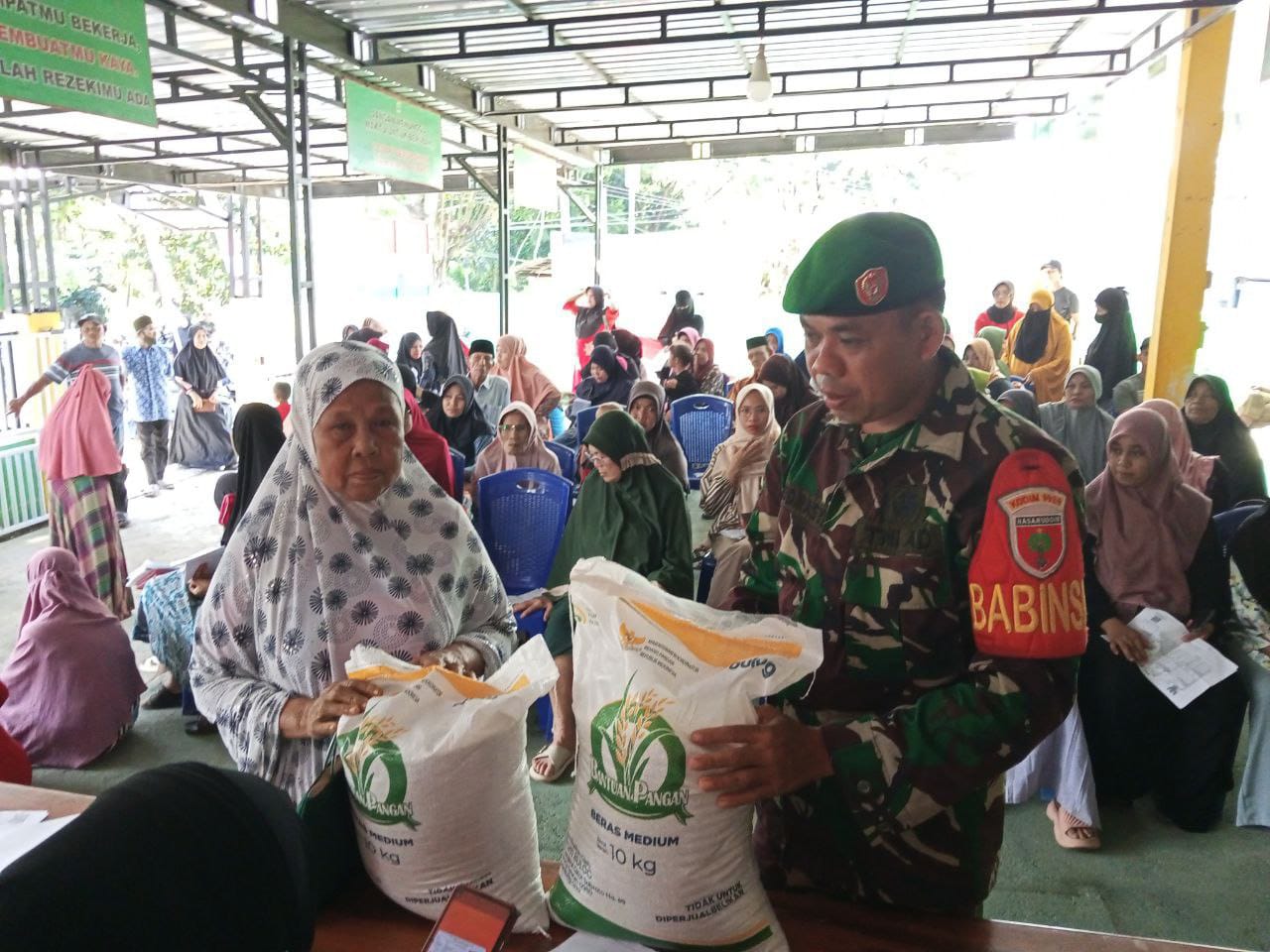 Serda Abdul Rasyid menyampaikan bahwa kehadiran Babinsa dalam kegiatan ini bertujuan untuk memastikan proses penyaluran berjalan dengan tertib, lancar, dan tepat sasaran. Ia juga menambahkan bahwa kegiatan ini merupakan bagian dari upaya sinergis antara TNI dan pemerintah dalam mendukung program-program sosial yang menyentuh langsung kebutuhan masyarakat di lapangan.