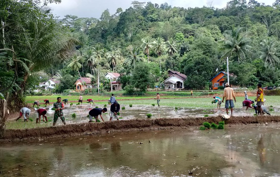 Lahan seluas 0,89 hektar tersebut ditanami padi sebagai bagian dari upaya meningkatkan produktivitas pertanian di wilayah binaan. Kehadiran Babinsa dalam kegiatan ini menjadi bukti nyata peran aktif TNI dalam mendorong semangat petani serta membangun kemandirian pangan di tingkat desa.