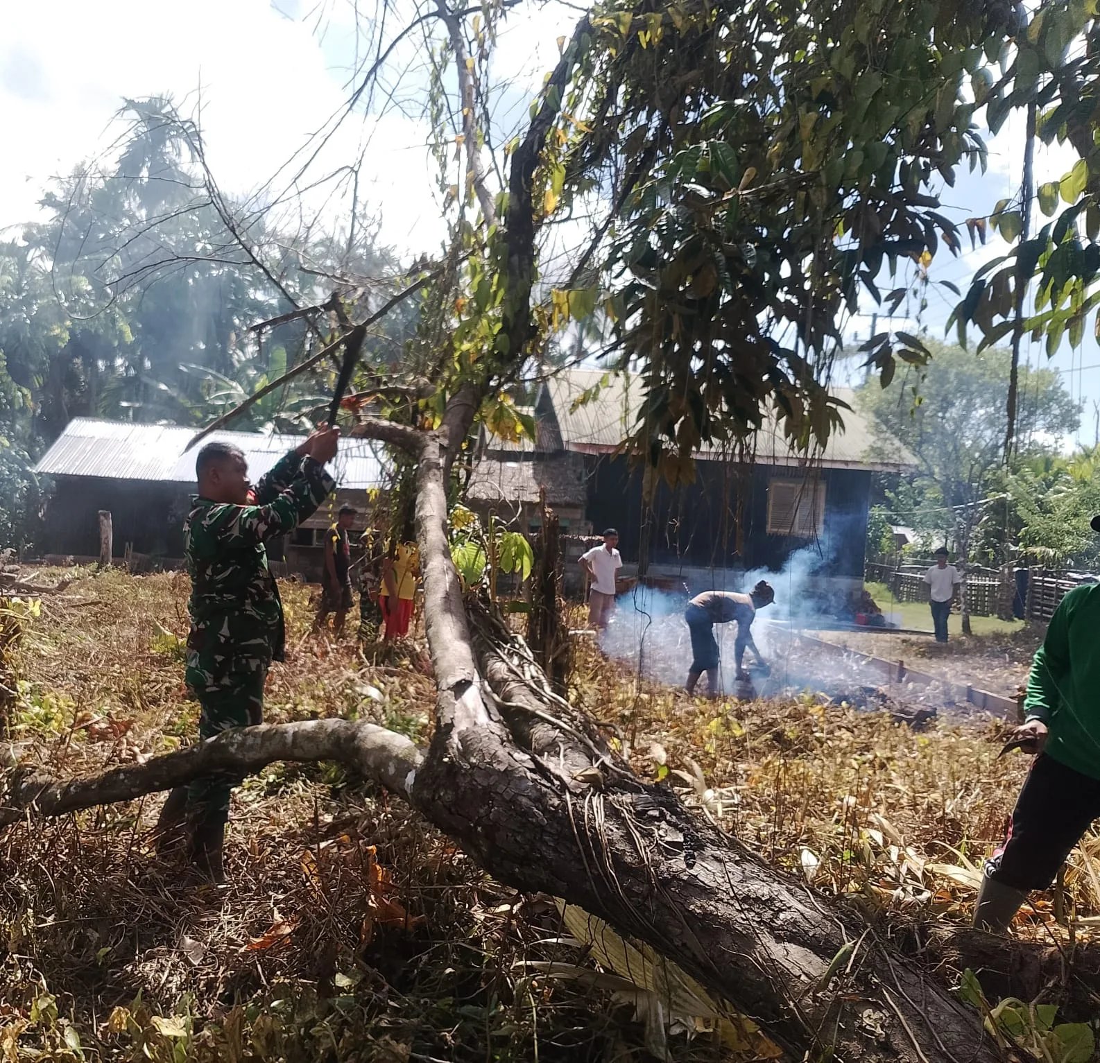 Simeulue – Praka Mardi Lestari Babinsa Posramil Teupah Barat, Kodim 0115/Simeulue, Korem 012/Teuku Umar Bersama bersama aparat desa melaksanakan giat gotong royong di Desa Sital, Kecamatan Teupah Barat, Kabupaten Simeulue. Minggu (15/02/2026)