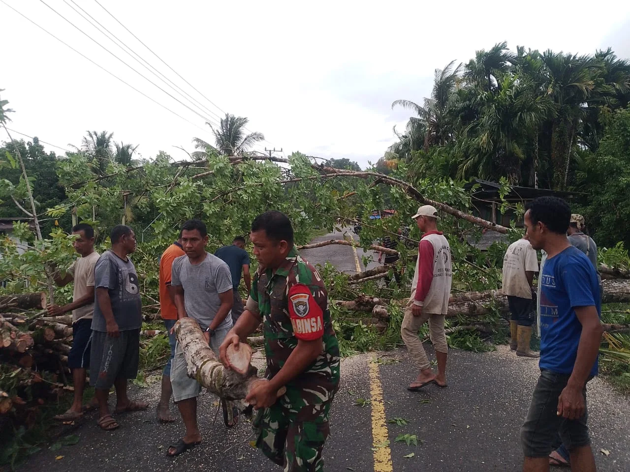 Simeulue – Praka Mardi Lestari Babinsa Posramil Teupah Barat, Kodim 0115/Simeulue, Korem 012/Teuku Umar Bersama bersama aparat desa melaksanakan giat gotong royong di Desa Leubang, Kecamatan Teupah Barat, Kabupaten Simeulue. Jumat (12/12/2025)