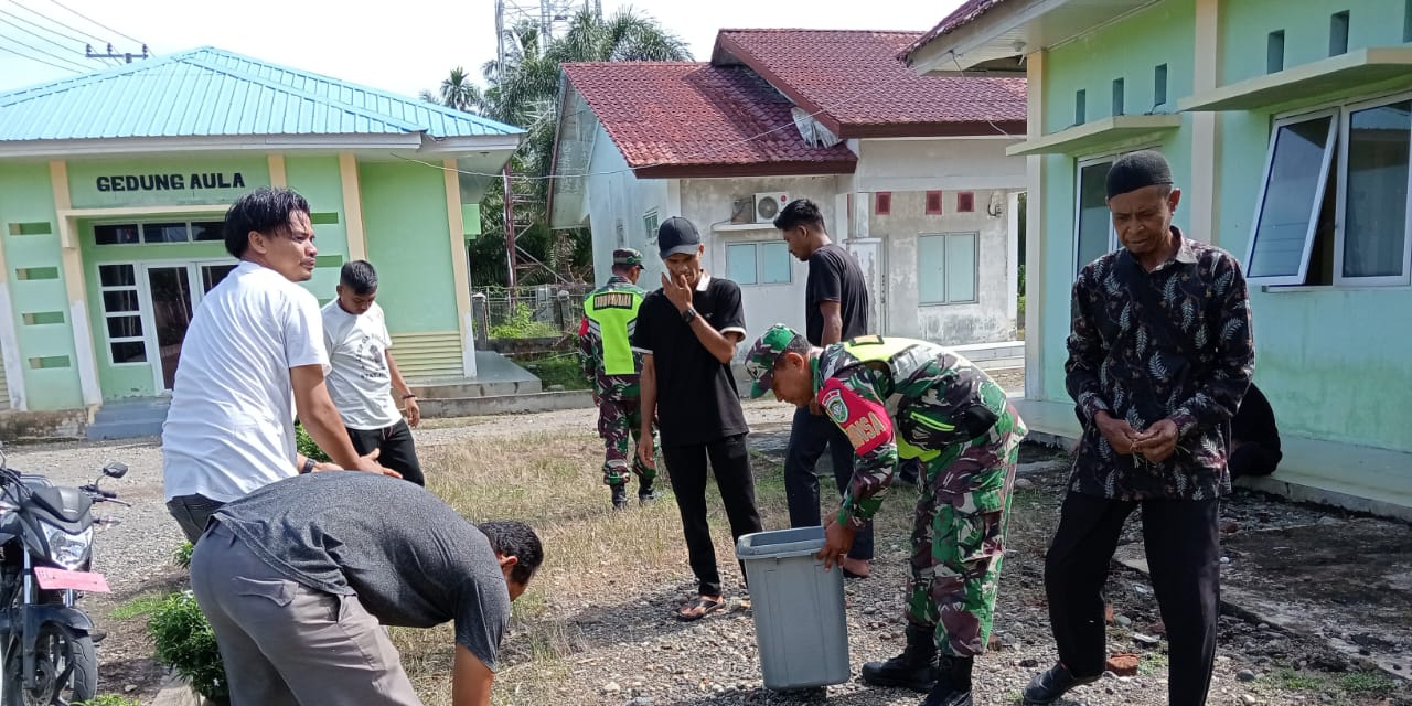 NAGAN RAYA Babinsa Pos Ramil Tripa Makmur/ Kodim 0116/Nara, Koptu Nur Andika Bersama Babinsa Lainnya melaksanakan Gotong Royong, di Desa Leung Keubu Jagat Kecamatan Tripa Makmur, Sabtu 13 September 2025