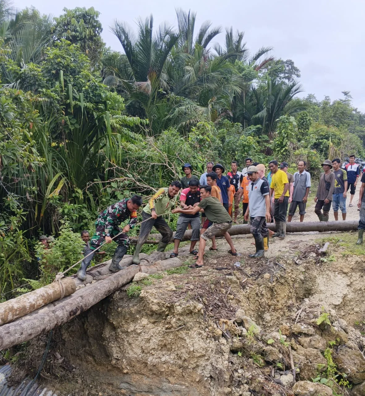 Simeulue – Praka Mitra Gunawan Babinsa Koramil 05/Simbar, Kodim 0115/Simeulue, Korem 012/Teuku Umar. Melaksanakan gotong royong dengan warga desa Amabaan, Kecamatan Simeulue Barat, Kabupaten Simeulue. Sabtu (13/12/2025).