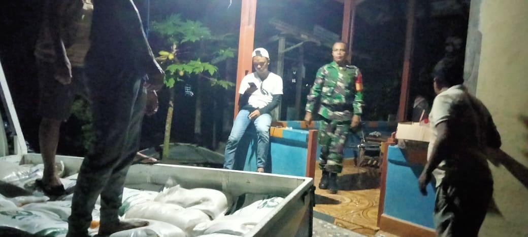 Raja Ampat ,PBD-Bertempat di kampung yenbewan Distrik Miosmanswar,Babinsa Koramil 1805-03/Samate,Serka Gasper logof melakasanakan kegiatan pendampingan pembagian dan penyaluran beras kepada masyarakat .