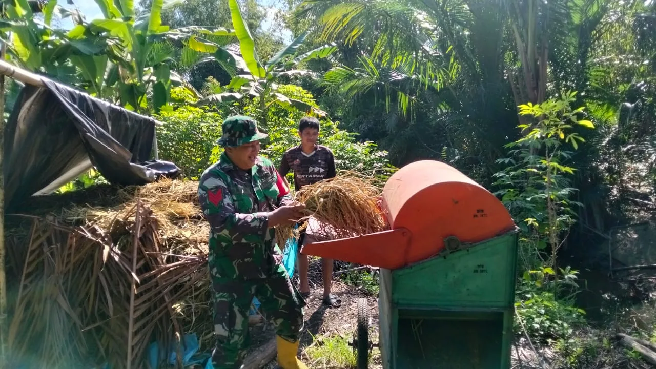 Kopka Subana menuturkan kegiatan ini merupakan bentuk kemanunggalan TNI bersama rakyat demi mewujudkan swasembada pangan nasional Babinsa turun ke lapangan membantu petani untuk mengangkut hasil panen padi untuk di jemur.