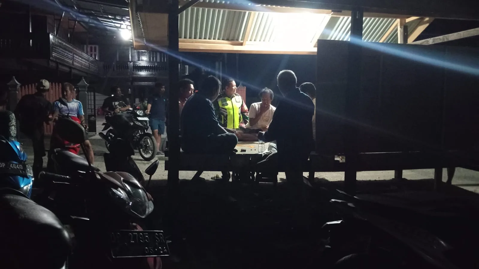 Pinrang_ Babinsa Koramil-03/Mattiro Bulu Kodim 1404/Pinrang Sertu Mansur melaksanakan kegiatan pemantauan wilayah sekaligus Komunikasi Sosial (Komsos) dengan warga yang sedang jaga Poskamling di Desa Pananrang Kecamatan Mattiro Bulu Kabupaten Pinrang, Senin (20/10/2025).