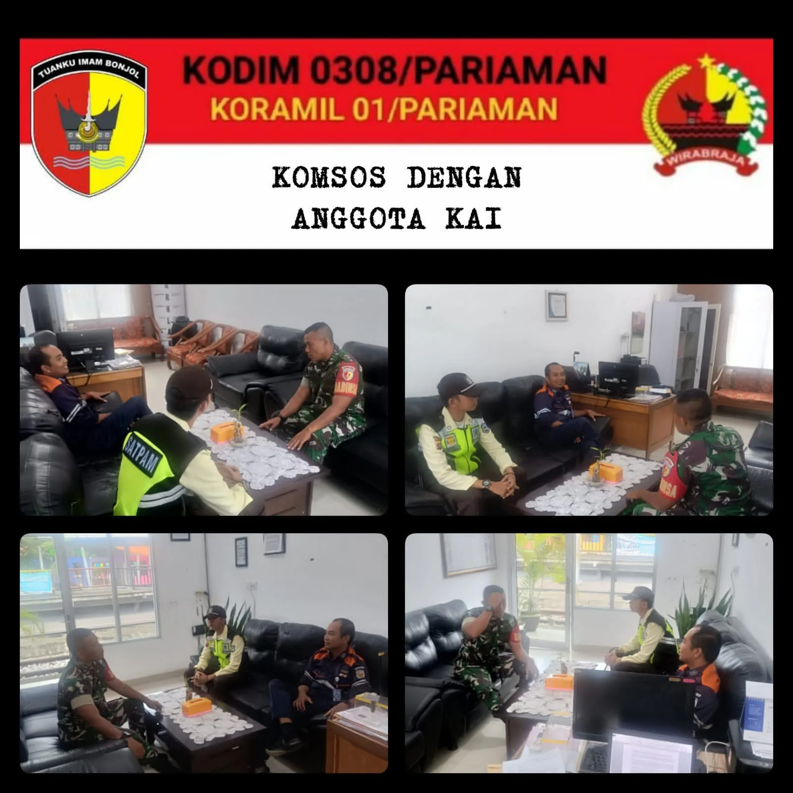 PARIAMAN,- Untuk meningkatkan keamanan di obyek vital Stasiun Kereta Api, Babinsa Koramil 01/Pariaman yang terdapat stasiun di wilayah binaannya, berkoordinasi dengan pihak Satpam PT KAI untuk menyimpan fungsi Satkowil khusus di lingkungan PT KAI (Persero).
