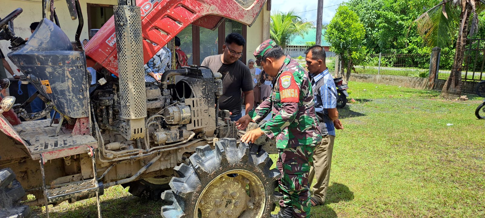 Dalam hal ini Babinsa Sertu A.Rizky sambangi ketua kelompok tani guna mengecekan Alsintan tersebut dimasudkan untuk mengetahui secara langsung alat pertanian yang ada dari jumlah kondisi dan kesiapan Alsintan tersebut itu sendiri untuk mendukung para petani dalam mengolah lahan pertanian pada masa musim tanam, sekaligus memastikan kondisinya sehingga siap digunakan.