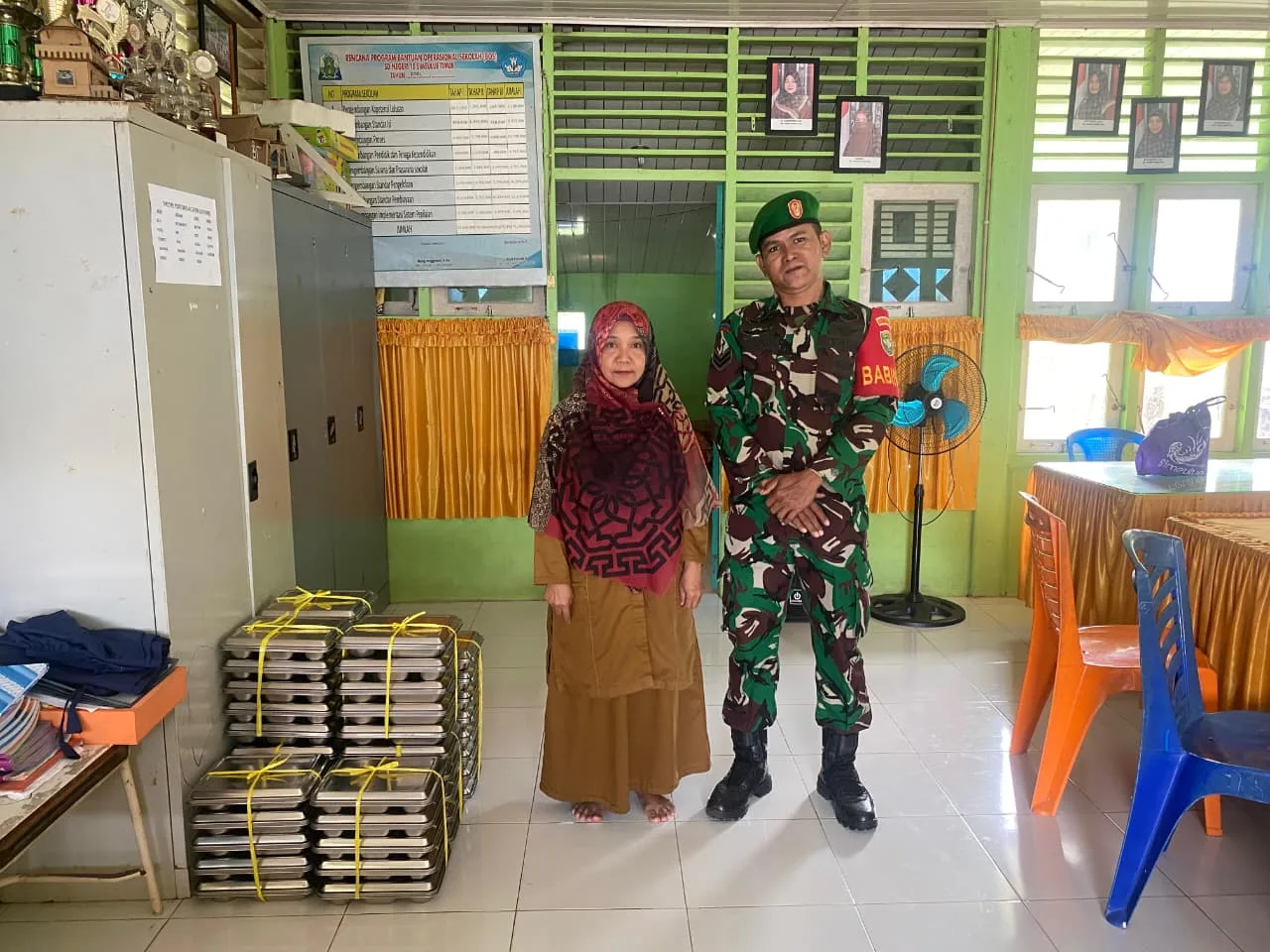 Simeulue – Sertu David Babinsa Koramil 01/Simeulue Timur, Kodim 0115/Simeulue, Korem 012/Teuku Umar. Melaksanakan kegiatan pendampingan Makan Bergizi Gratis (MBG) Di, Kecamatan Simeulue Timur, Kabupaten Simeulue. Kamis (20/11/2025).