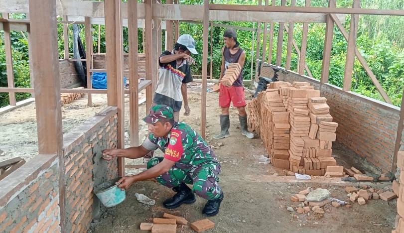 Koptu Jufri Babinsa Koramil 01/Simeulue Timur, Kodim 0115/Simeulue, Korem 012/Teuku Umar. Melaksanakan Bakti bersama masyarakat binaan dengan membantu warganya memplaster rumah agar cepat selesai dan bisa di huni oleh di oleh pemilik dan keluarganya di Desa Suka Karya, Kecamatan Simeulue Timur, Kabupaten Simeulue. Senin (07/07/2025).