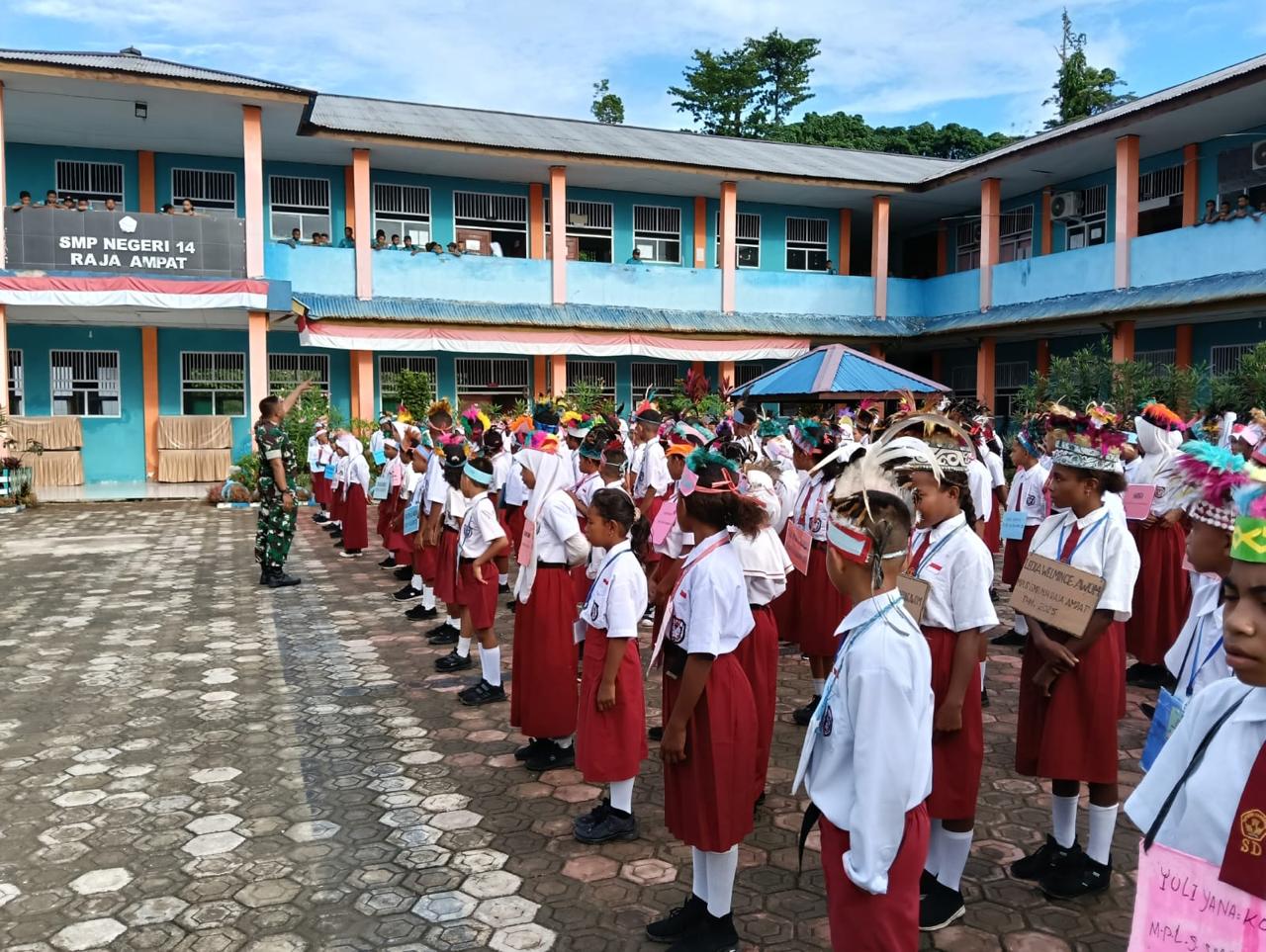 Raja Ampat,PBD-Dalam rangka menyambut tahun ajaran baru, Bintara Pembina Desa (Babinsa) turut ambil bagian dalam kegiatan Masa Pengenalan Lingkungan Sekolah (MPLS) bagi siswa-siswi baru di SMP- negri 14 Raja Ampat Distrik Waisai kota kab.Raja Ampat ,