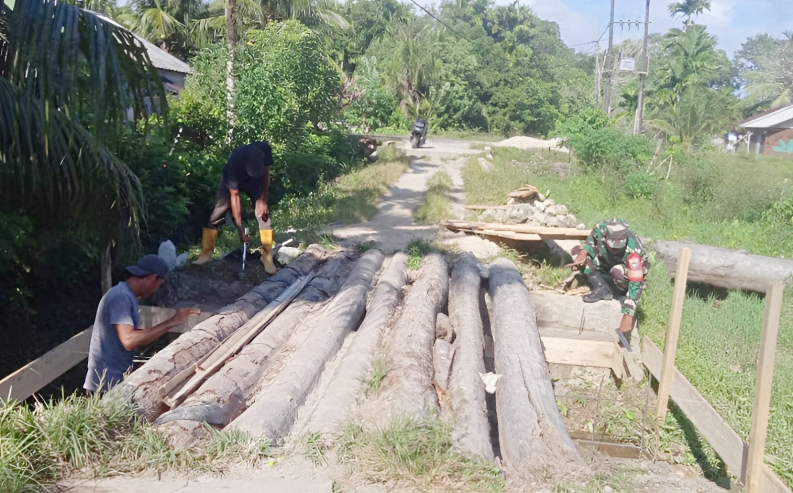 Babinsa Koramil 02/Simteng Bantu Warga Perbabaiki Jembatan