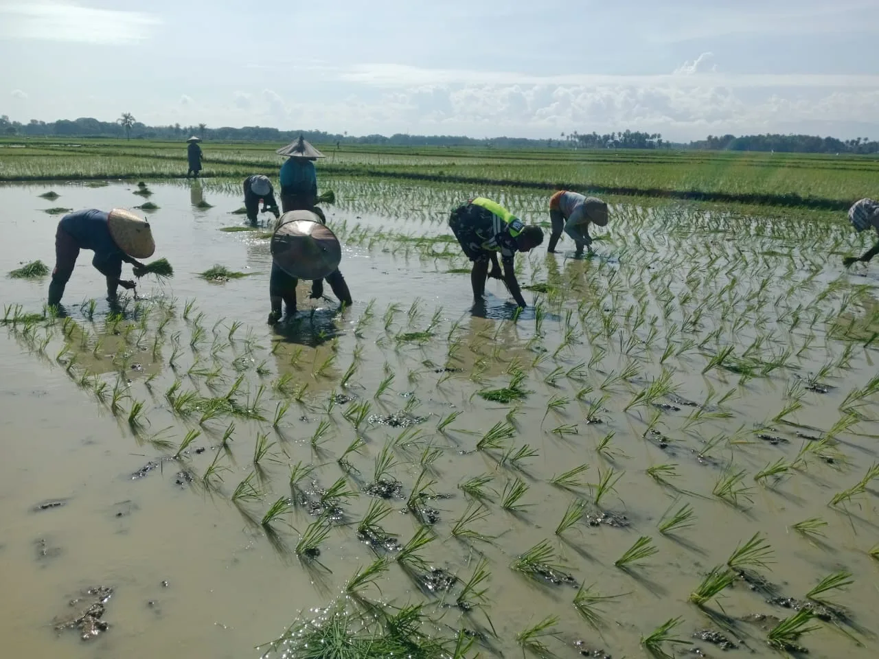 Selain membantu secara fisik, kegiatan ini juga bertujuan memberikan motivasi kepada petani agar tetap semangat dalam mengelola lahan pertanian, meskipun dihadapkan pada berbagai tantangan seperti cuaca dan ketersediaan sarana produksi.