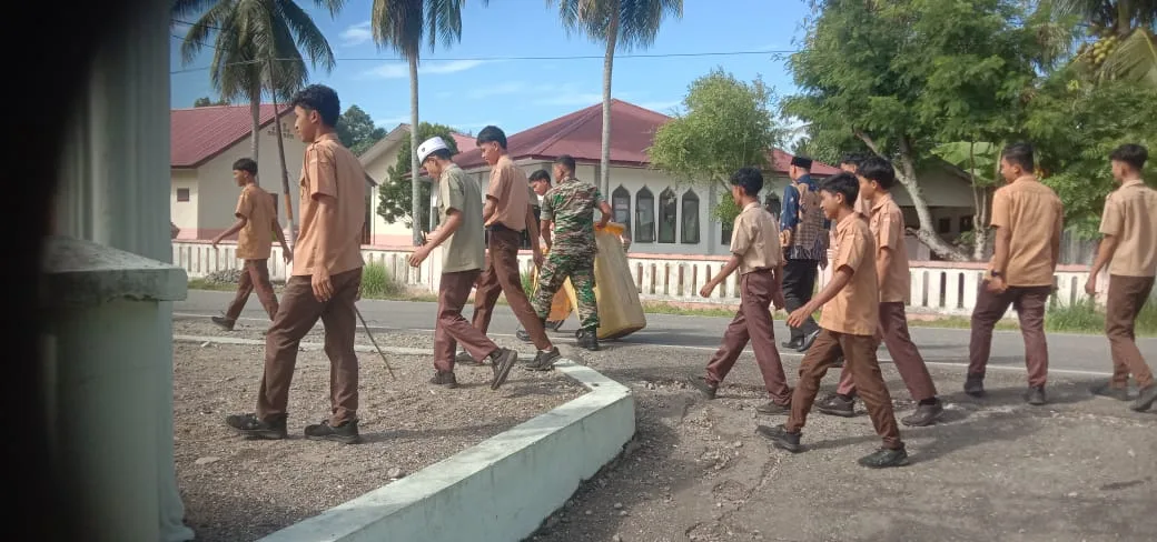 Babinsa Koramil 03/Meukek Ajak Siswa SMA Negeri 1 Meukek Gotong Royong Jaga Kebersihan Lingkungan Sekolah