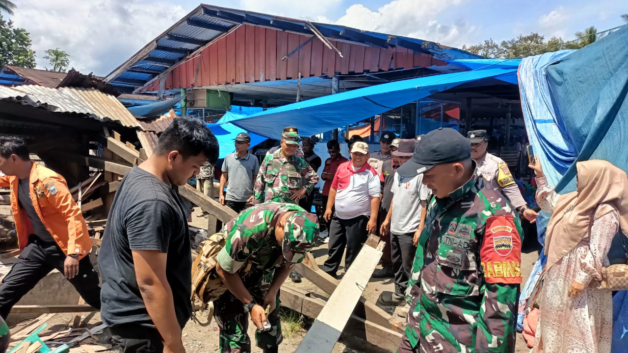 Babinsa Koramil 03/Sungai Sariak Hadir di Tengah-tengah Masyarakat Untuk Membantu Evakuasi Pasar Yang Roboh di Sungai Sariak
