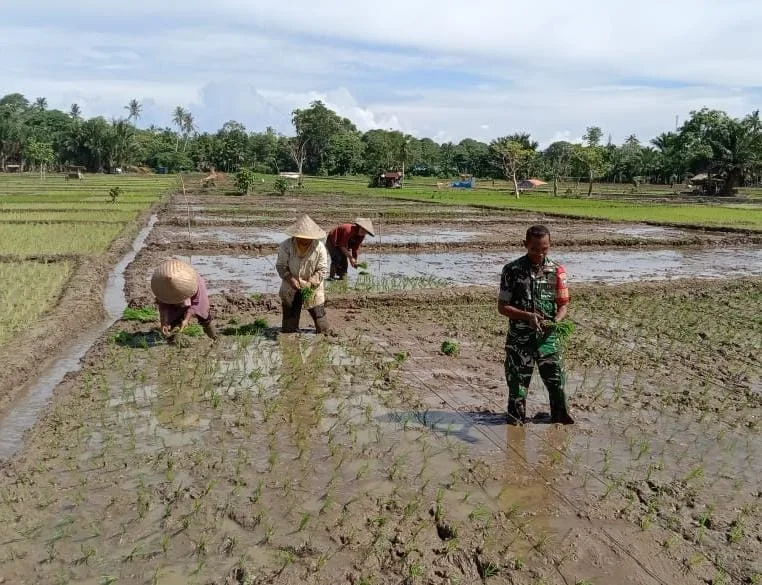 “Ini sudah merupakan tugas kami sebagai aparatur kewilayahan membantu para petani dalam hal pertanian, seperti kegiatan tanam padi yang sedang saya kerjakan merupakan wujud kemanunggalan TNI- Rakyat,” ujarnya.