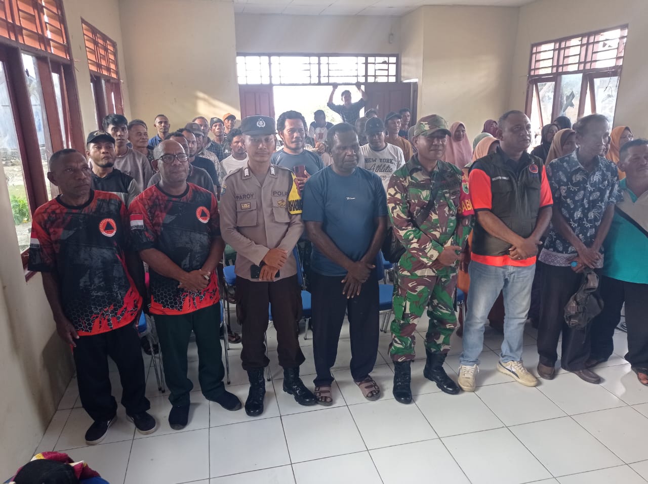Raja Ampat ,PBD-Serda loji Anggota Koramil 04/Misol kodim 1805/Raja Ampat menghadiri Acara Sosialisasi Mitigasi Bencana dan penanggulangan bencana alam Di kampung dabatan distrik misol kab.Raja Ampat ,Sabtu(12/07/2025).