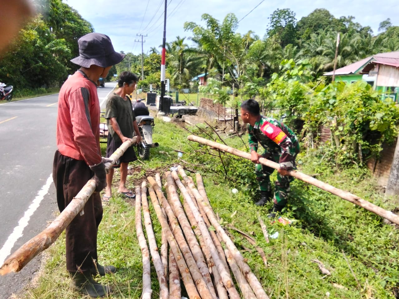 Babinsa Koramil 04/Salang Praka Ikwanul Akrab, Kodim 0115/Simeulue, Korem 012/Teuku Umar. Melaksanakan komsos membantu warga yang sedang menyiapkan pagar untuk persawahan, Agar tidak masuk hewan ternak seperti sapi, kerbau, Kambing dan lain-lain, Sehingga dapat hasil yang maksimal di Desa Nasreuhe, Kecamatan Salang, Kabupaten Simeulue. Kamis (19/06/2025).