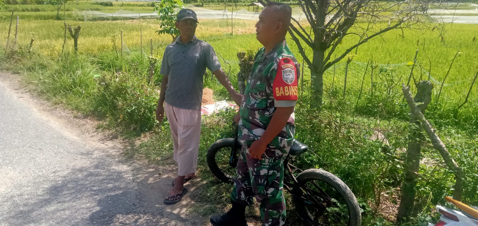 Babinsa Koramil 04/Sawang Sempatkan Komsos dengan Warga di Sela-sela Pemantauan Wilayah