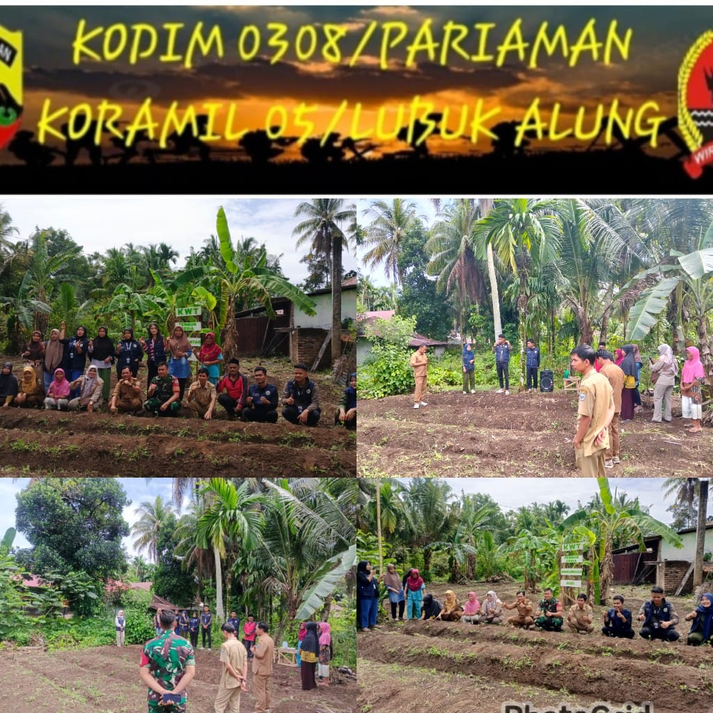 Kegiatan ini dilaksanakan di lahan pertanian milik kelompok KWT Korong Tembok sebagai bentuk sinergi antara aparat TNI, pemerintah nagari, akademisi, dan masyarakat dalam mendukung ketahanan pangan.