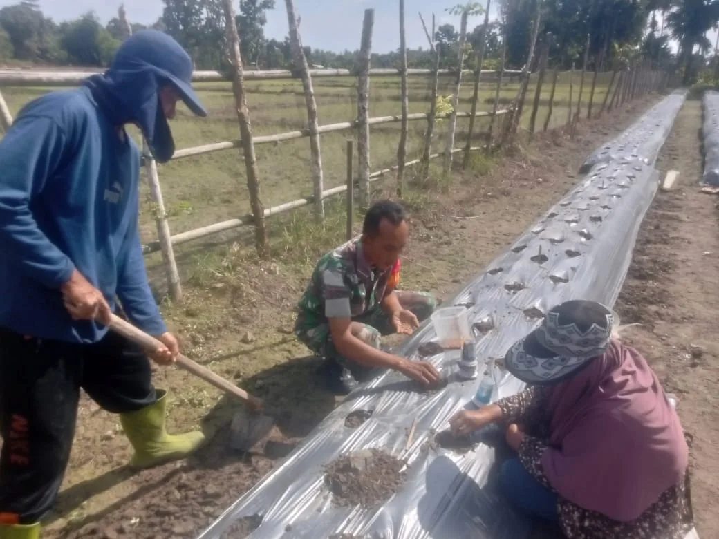 Simeulue – Serda Megi Juanda Babinsa Koramil 05/Simeulue Barat, Kodim 0115/Simeulue, Korem 012/Teuku Umar. Bantu warga penyiapan lahan untuk bibit cabe di Desa Lamamek, Kecamatan Simeulue Barat, Kabupaten Simeulue. Selasa (30/09/2025).