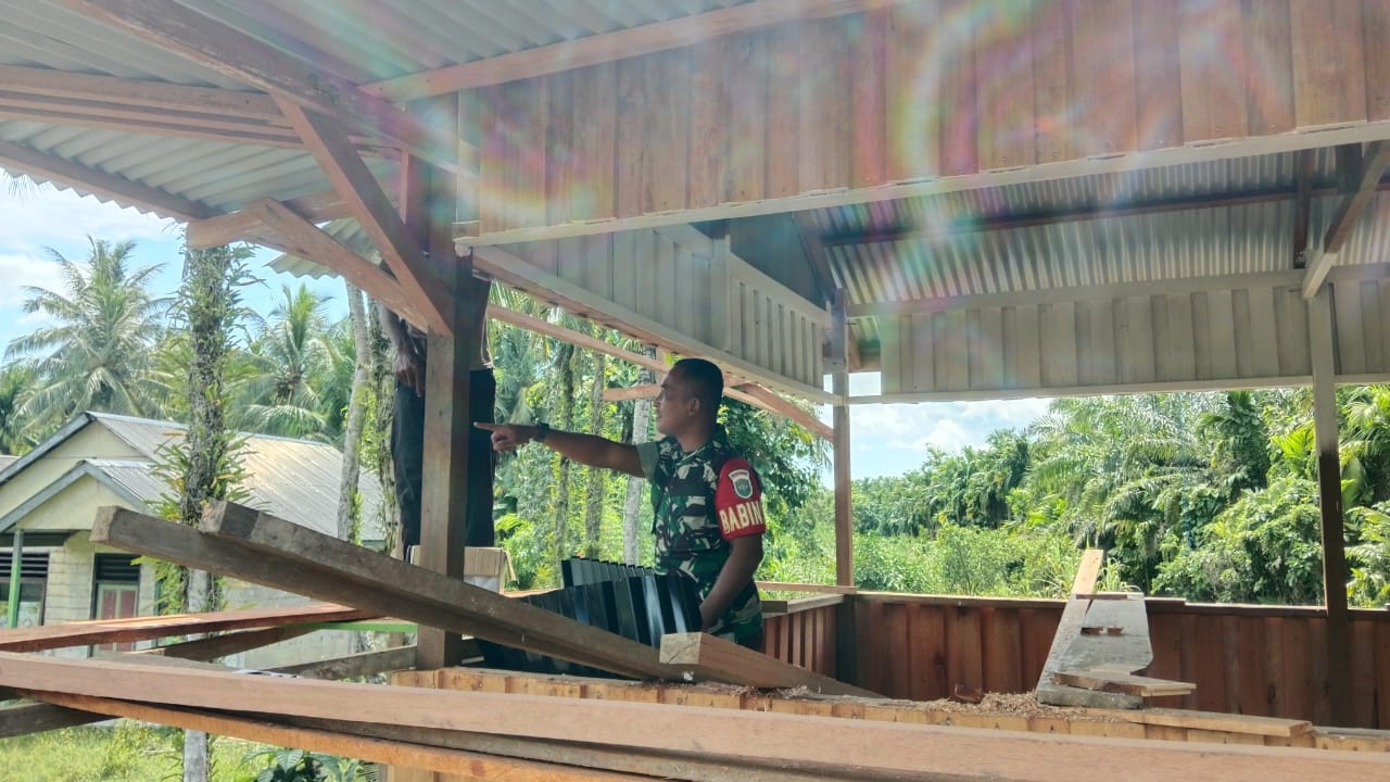 Selalu berada di tengah-tengah masyarakat dan aktif membantu mengatasi kesulitan warga, merupakan salah satu tugas Babinsa di wilayah binaanya. Seperti yang dilakukan oleh Serda Yatno Babinsa Koramil 06/Teluk Dalam, dalam membantu pemasangan atap seng di rumah salah satu warga Desa Bulu Hadek yang merupakan wilayah binaannya.