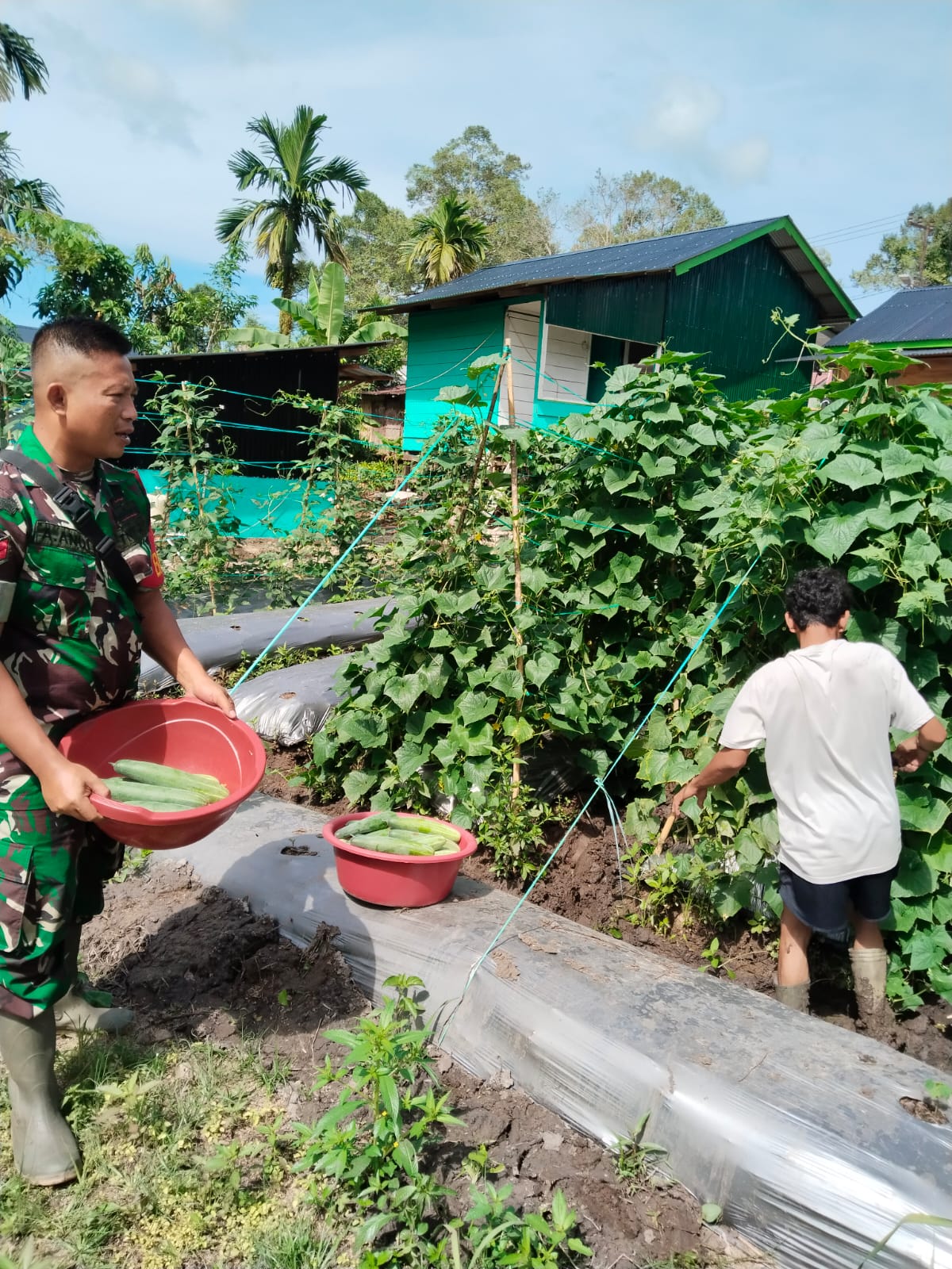 Simeulue – Koptu Apriandi Babinsa Koramil 06/Teluk Dalam, Kodim 0115/Simeulu, Korem 012/Teuku Umar. Mendampingi warga memetik buah mentimun di Desa Bulu Hadek, Kecamatan Teluk Dalam, Kabupaten Simeulue. Jumat (22/08/2025).