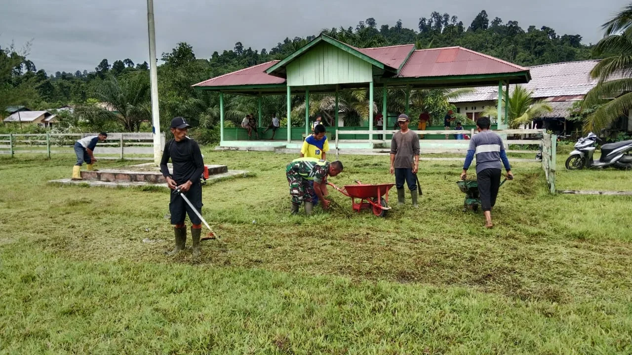 Simeulue – Serda Yatno Babinsa Koramil 06/Teluk Dalam melaksanakan giat karya bakti gotong royong bersama masyarakat desa Kuala Bhakti, Kecamatan Teluk Dalam, Kabupaten Simeulue. Sabtu (17/01/2026).