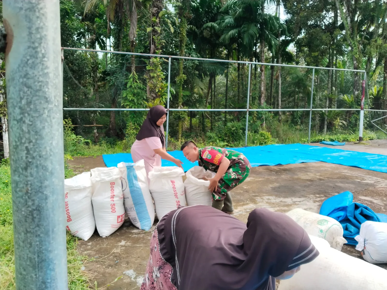 Koptu Apriandi menuturkan kegiatan ini merupakan bentuk kemanunggalan TNI bersama rakyat demi mewujudkan swasembada pangan nasional Babinsa turun ke lapangan membantu petani untuk mengangkut hasil panen padi untuk di jemur.