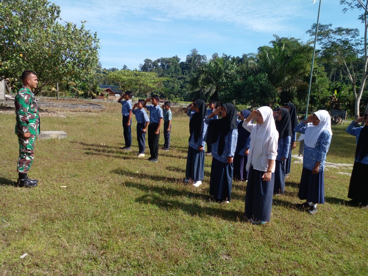 Simeulue – Serka Robiansyah Babinsa Koramil 08/Alafan, Kodim 0115/Simeulue, Korem 012/Teuku Umar Melaksanakan Wasbang di sekolah binaan di Desa Lewak, Kecamatan Alafan, Kabupaten Simeulue. Senin (01/09/2025).