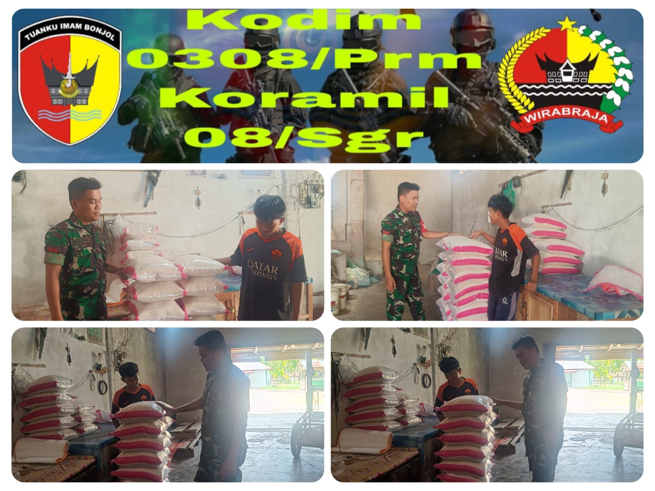 SUNGAI GERINGGING, — Dalam rangka mempererat hubungan dengan masyarakat binaan, Babinsa Koramil 08/Sungai Geringging Kodim 0308/Pariaman, Pratu Wahyu Aprilo, melaksanakan komunikasi sosial (Komsos) dengan salah satu penjual Beras di Nagari lll Koto Aur Malintang Selatan, Kecamatan lV Koto Aur Malintang, Kabupaten Padang Pariaman, Minggu (14/09/2025).
