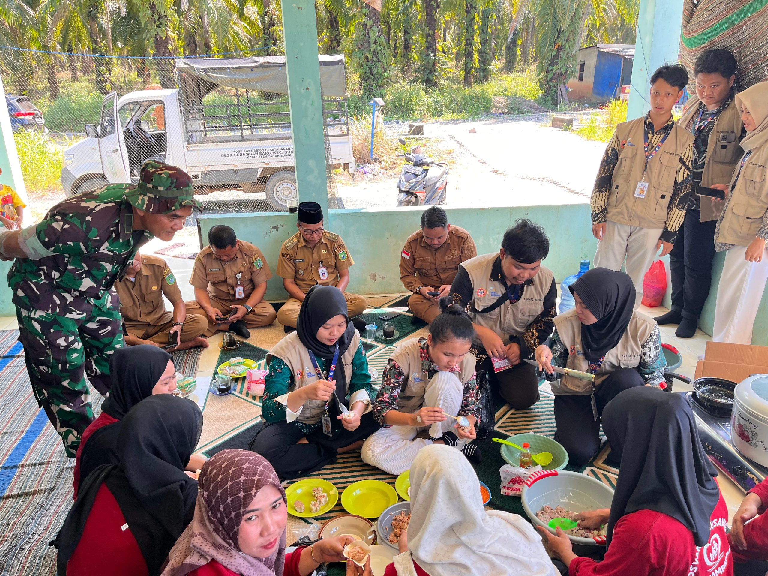 Tanah Bumbu – Dalam rangka mendukung program edukasi gizi masyarakat, Babinsa Desa Sebamban Baru dari Babinsa Koramil 1022-06/Sungai Loban, Peltu Heru Riswandi, menghadiri kegiatan Sosialisasi Gemar Ikan dan Pengolahan Dimsum yang digelar oleh mahasiswa Kuliah Kerja Nyata (KKN) Universitas Lambung Mangkurat (Unlam), Rabu (30/07/2025).