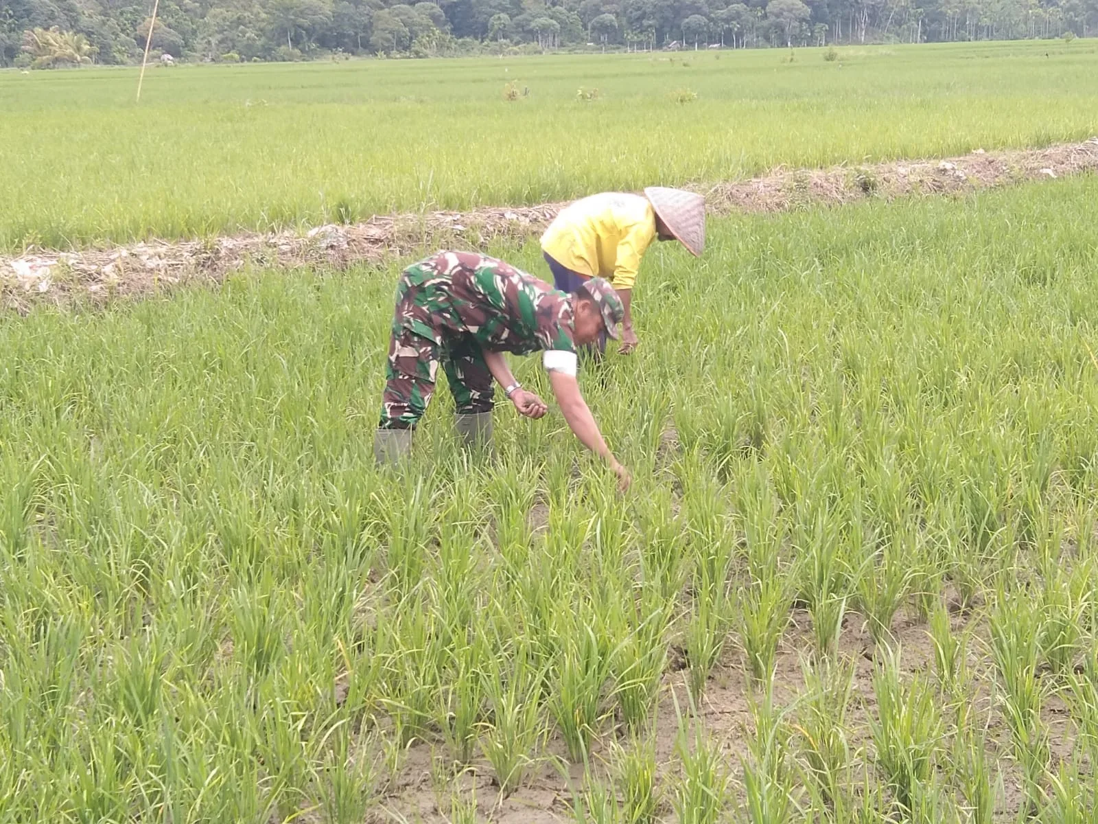 Pendampingan tersebut dilakukan sebagai bentuk kepedulian Babinsa terhadap kemajuan sektor pertanian di wilayah, sekaligus memastikan kondisi tanaman padi tumbuh dengan baik dan bebas dari hama maupun gangguan gulma.